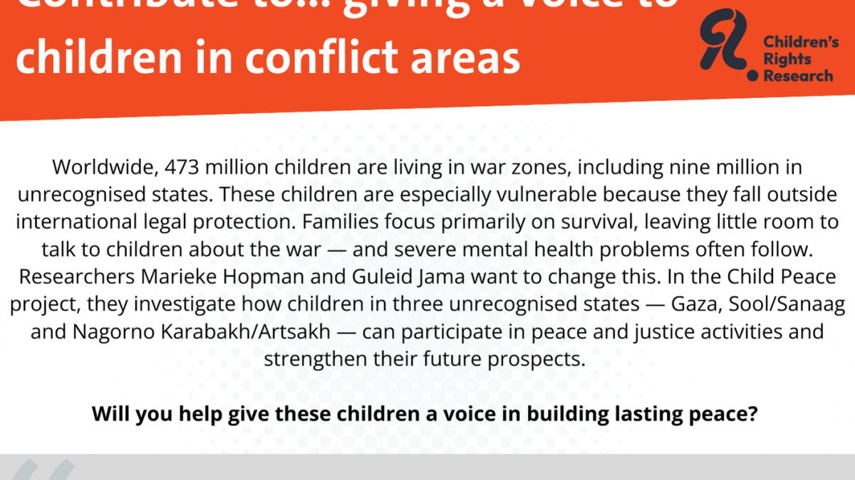 Children in the conflict-affected regions of Sool and Sanaag have grown up amid violence, displacement, and uncertainty. Many of them have witnessed war, lost loved ones, or been forced to flee their homes. Yet their experiences, fears, and hopes are rarely heard. Globally, millions of children live in conflict zones, and those in areas linked to non-recognised states are particularly vulnerable because they often fall outside effective international protection. The CHILD-PEACE research project, led by Dr Marieke Hopman and Guleid Jama, seeks to change this by studying how children in places like Sool and Sanaag can heal from conflict and actively contribute to building sustainable peace in their communities.